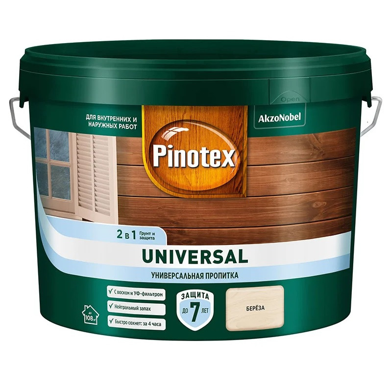Купить Пропитка 2 в 1 Pinotex Universal береза 9 л по лучшей цене с доставкой - интернет магазин №1 в России