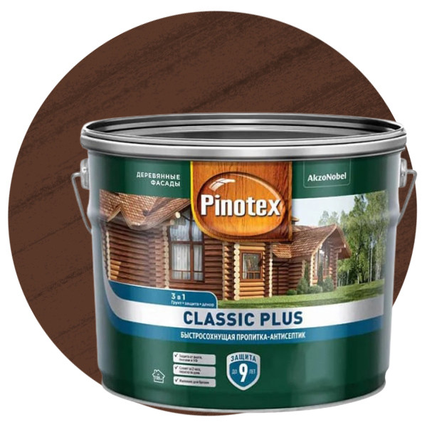 Купить Пропитка для древесины 3 в 1 Pinotex Classic Plus 5479955 тиковое дерево 9 л по лучшей цене с доставкой - интернет магазин №1 в России