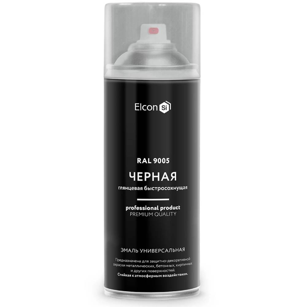 Купить Эмаль аэрозоль акриловая универсальная Elcon чёрная глянцевая 520 мл RAL 9005 по лучшей цене с доставкой - интернет магазин №1 в России