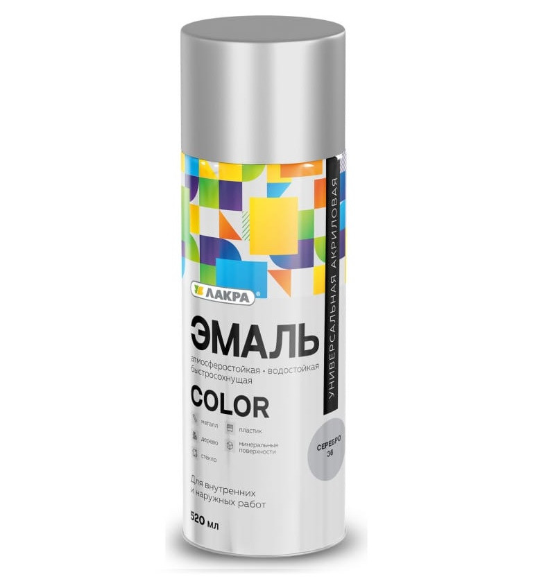 Купить Эмаль аэрозольная Лакра Color универсальная серебро 36 520 мл по лучшей цене с доставкой - интернет магазин №1 в России