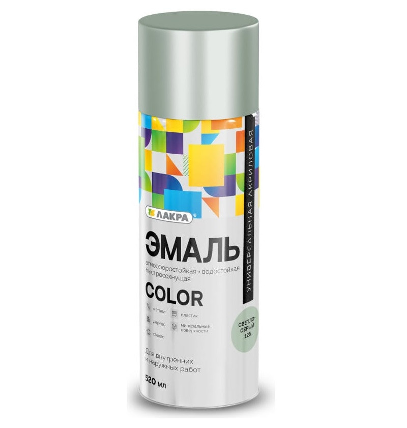 Купить Эмаль аэрозольная Лакра Color универсальная светло-серая 125 520 мл по лучшей цене с доставкой - интернет магазин №1 в России
