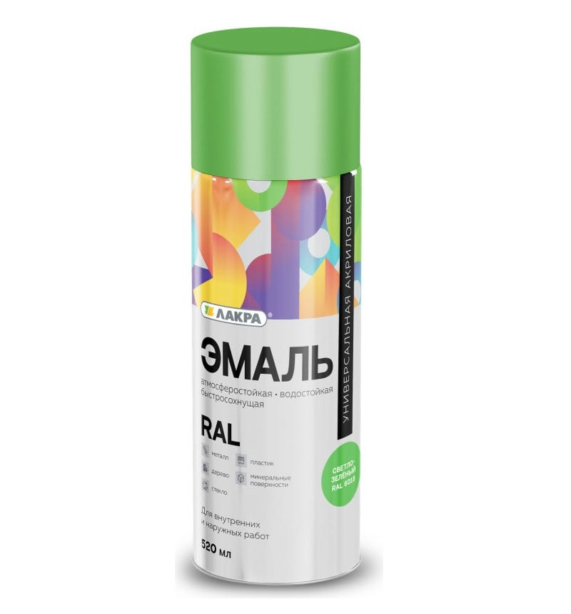 Купить Эмаль аэрозольная Лакра светло-зеленая RAL 6018 520 мл по лучшей цене с доставкой - интернет магазин №1 в России