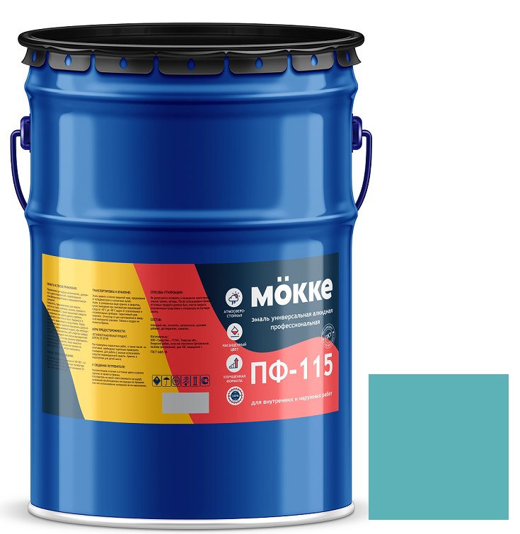 Купить Эмаль алкидная профессиональная Mokke ПФ-115 бирюзовая 20 кг по лучшей цене с доставкой - интернет магазин №1 в России