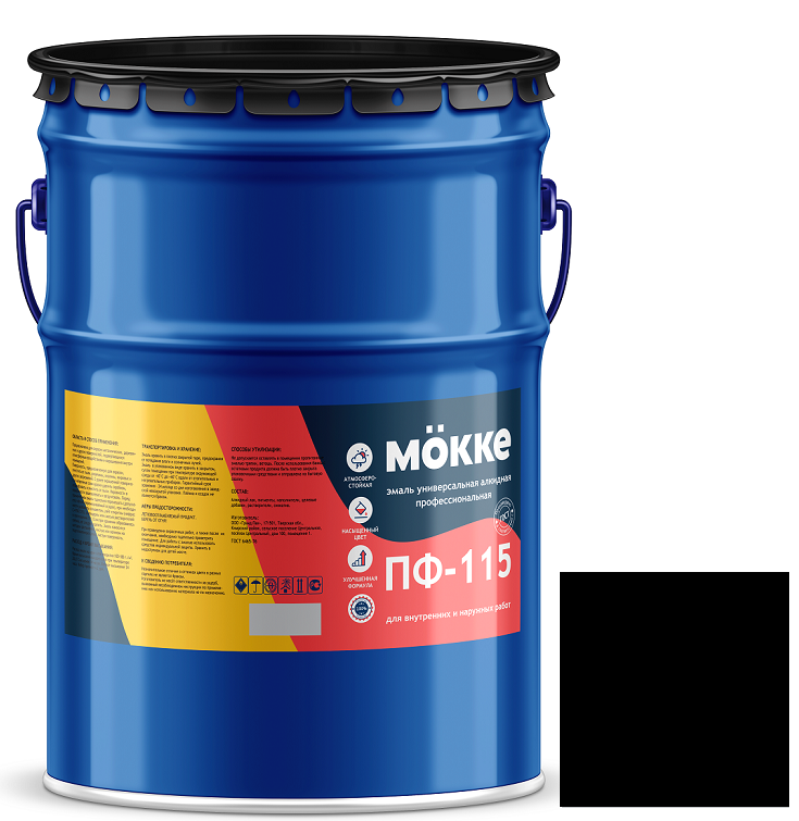 Купить Эмаль алкидная профессиональная Mokke ПФ-115 черная 20 кг по лучшей цене с доставкой - интернет магазин №1 в России
