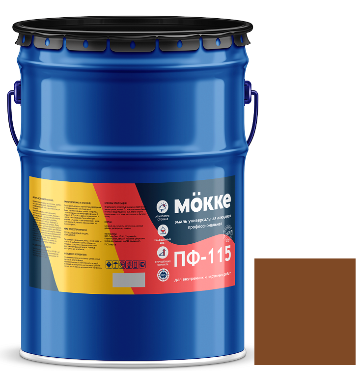 Купить Эмаль алкидная профессиональная Mokke ПФ-115 коричневая 20 кг по лучшей цене с доставкой - интернет магазин №1 в России