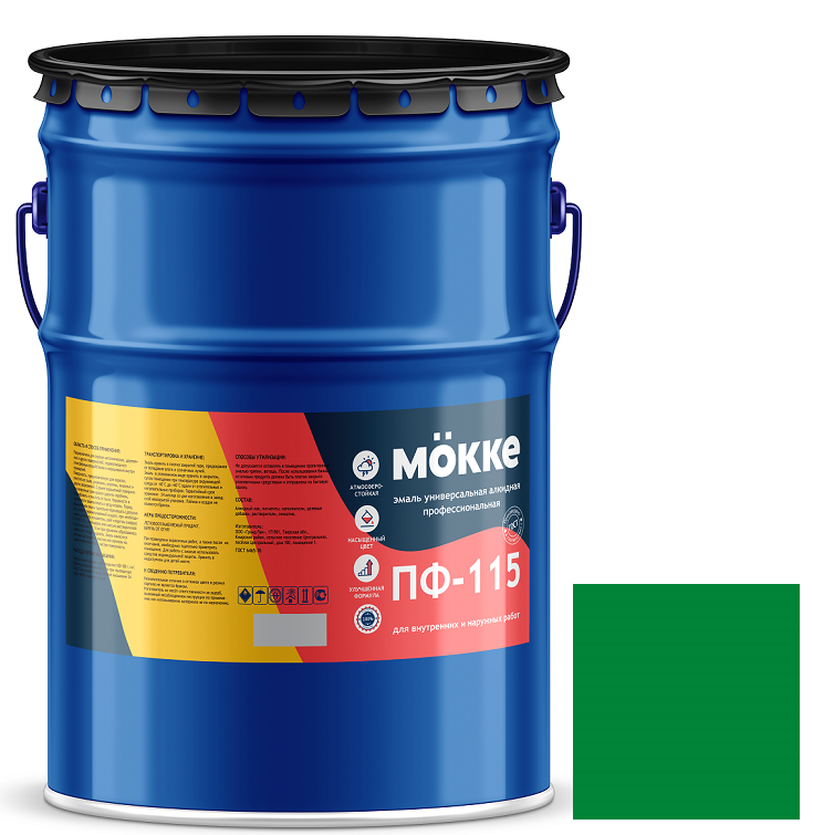 Купить Эмаль алкидная профессиональная Mokke ПФ-115 зеленая 20 кг по лучшей цене с доставкой - интернет магазин №1 в России