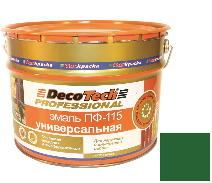 Купить Эмаль DecoTech Professional ПФ-115 Ral 6002 зеленая глянцевая 10 кг по лучшей цене с доставкой - интернет магазин №1 в России