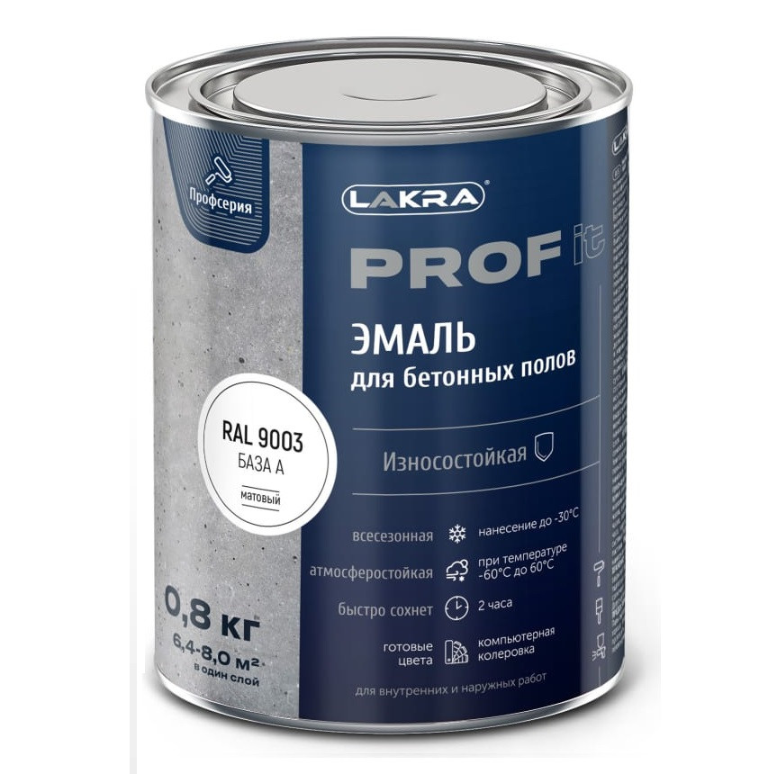 Купить Эмаль для бетонных полов быстросохнущая Лакра Prof it База А RAL 9003 0,8 кг по лучшей цене с доставкой - интернет магазин №1 в России