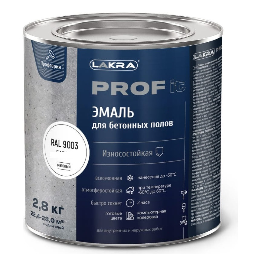 Купить Эмаль для бетонных полов быстросохнущая Лакра Prof it База С 2,8 кг по лучшей цене с доставкой - интернет магазин №1 в России