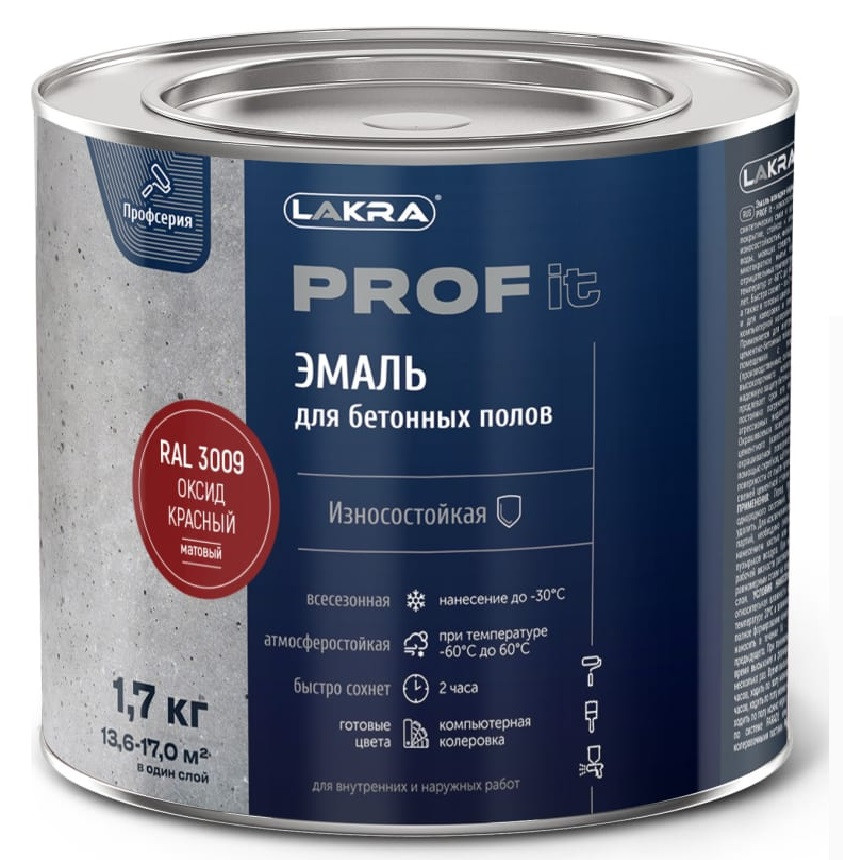 Купить Эмаль для бетонных полов быстросохнущая Лакра Prof it RAL 3009 оксид красный 1,7 кг по лучшей цене с доставкой - интернет магазин №1 в России