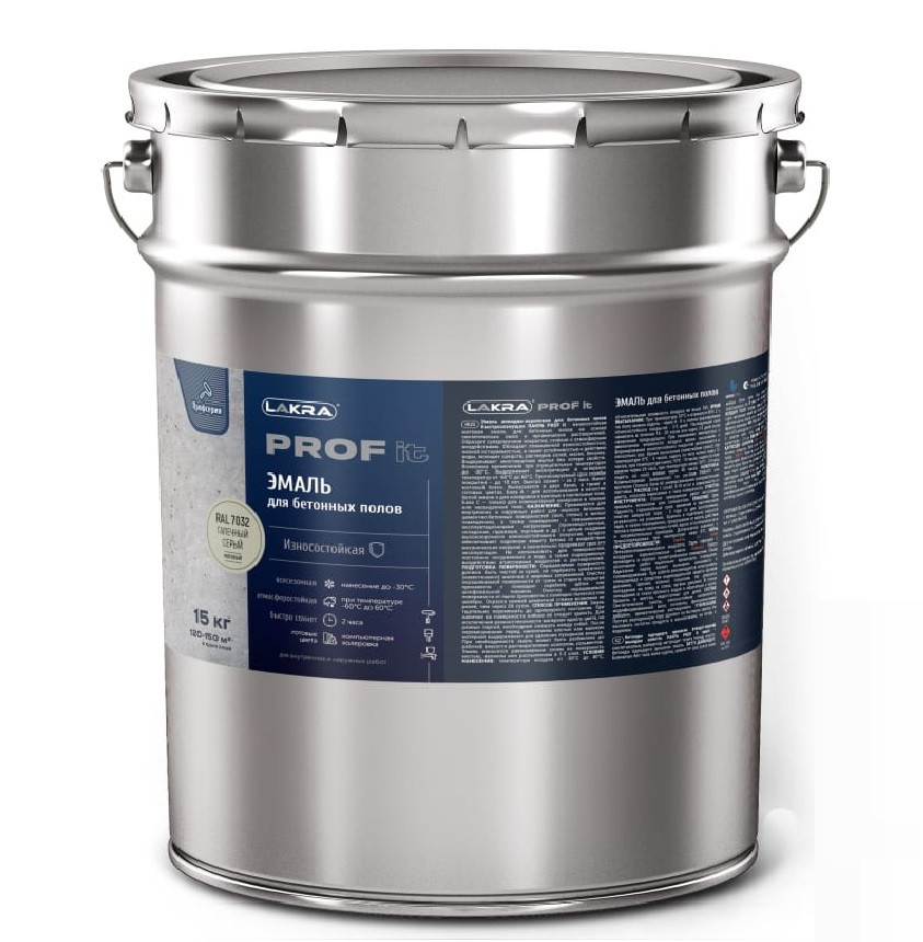 Купить Эмаль для бетонных полов быстросохнущая Лакра Prof it RAL 7032 галечный серый 15 кг по лучшей цене с доставкой - интернет магазин №1 в России