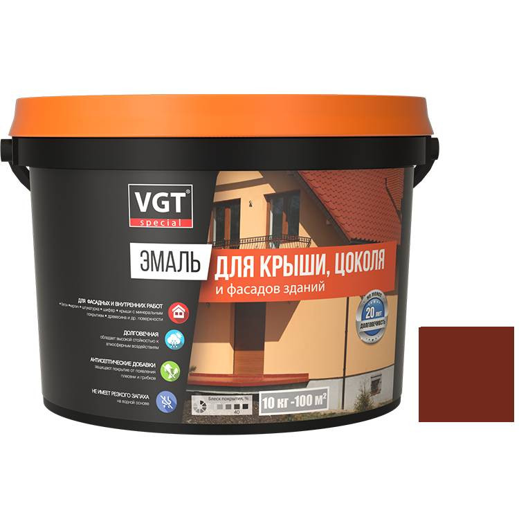 Купить Эмаль для крыши цоколя и фасадов зданий VGT ВД-АК-1179 полуглянцевая шоколадная 10 кг по лучшей цене с доставкой - интернет магазин №1 в России