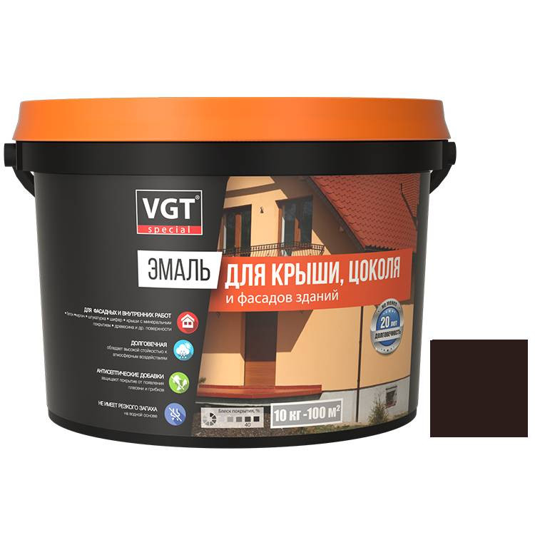 Купить Эмаль для крыши цоколя и фасадов зданий VGT ВД-АК-1179 полуглянцевая темно-коричневая 2,5 кг по лучшей цене с доставкой - интернет магазин №1 в России