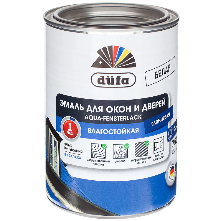 Купить Эмаль для окон и дверей Dufa Aqua-Fensterlack белая 0,75 л по лучшей цене с доставкой - интернет магазин №1 в России