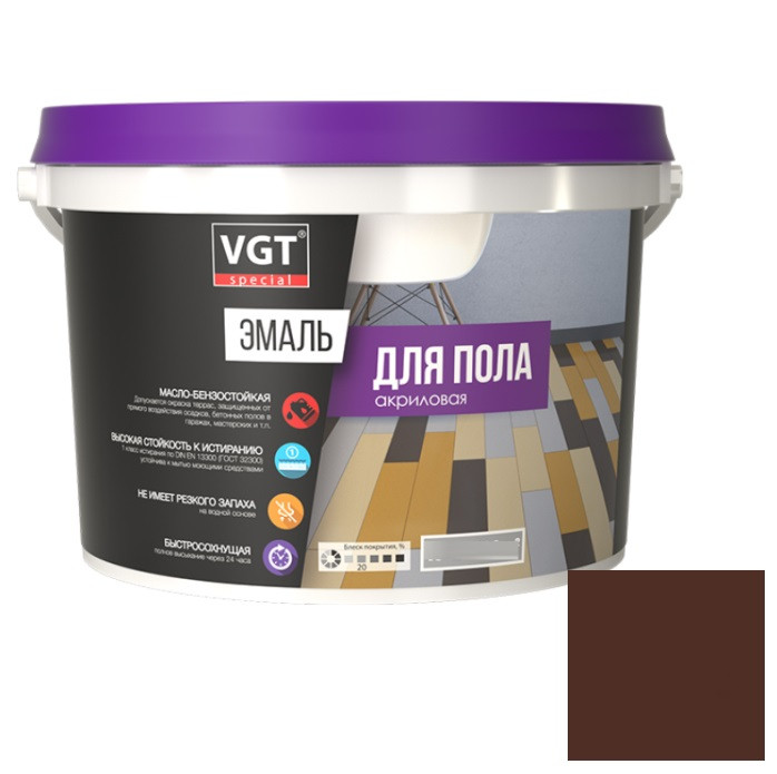 Купить Эмаль для пола VGT Профи ВД-АК-1179 коричневая 10 кг по лучшей цене с доставкой - интернет магазин №1 в России