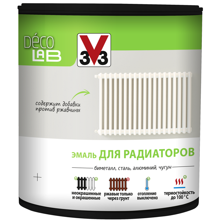 Купить Эмаль для радиаторов V33 Decolab белая 0,5 л по лучшей цене с доставкой - интернет магазин №1 в России