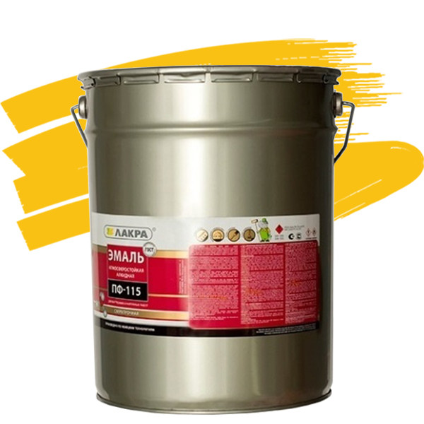 Купить Эмаль Лакра ПФ-115 желтая 20 кг по лучшей цене с доставкой - интернет магазин №1 в России