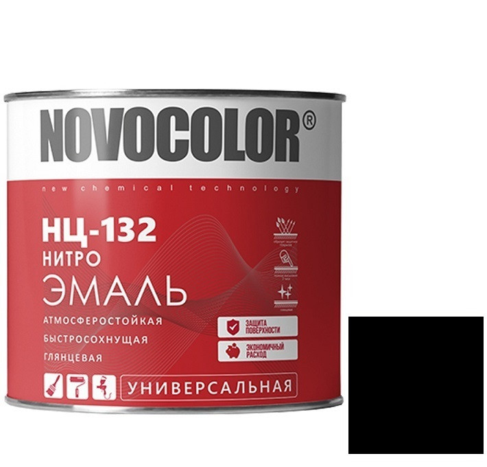 Купить Эмаль Novocolor НЦ-132 глянцевая черная 1,7 кг по лучшей цене с доставкой - интернет магазин №1 в России