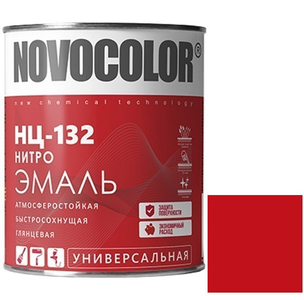 Купить Эмаль Novocolor НЦ-132 глянцевая красная 0,7 кг по лучшей цене с доставкой - интернет магазин №1 в России