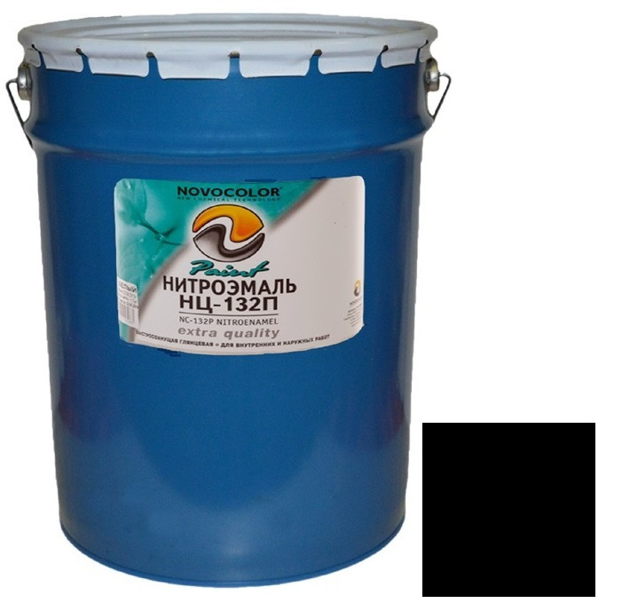 Купить Эмаль Novocolor НЦ-132 ГОСТ глянцевая черная 25 кг по лучшей цене с доставкой - интернет магазин №1 в России