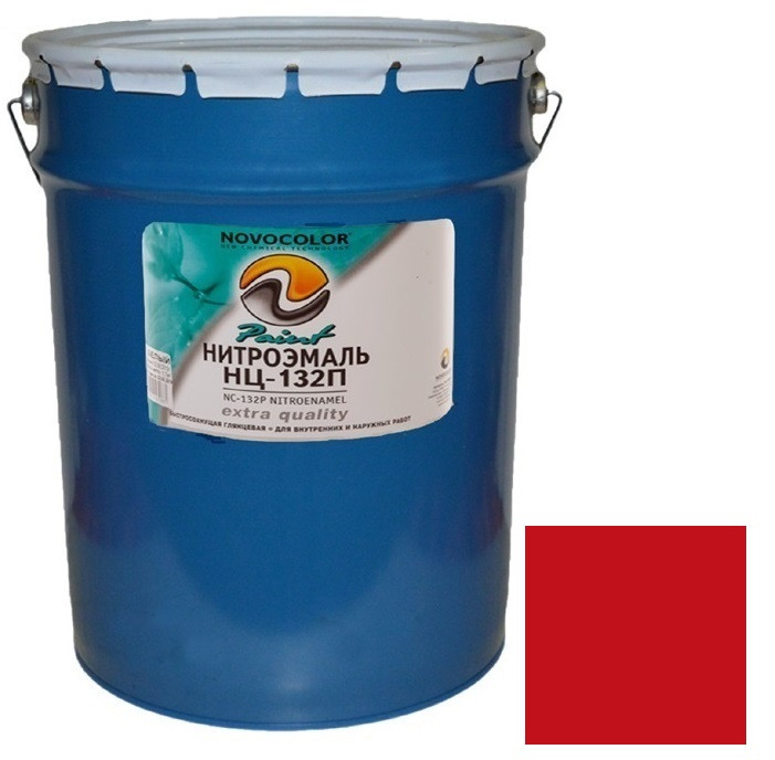 Купить Эмаль Novocolor НЦ-132 ГОСТ глянцевая красная 25 кг по лучшей цене с доставкой - интернет магазин №1 в России