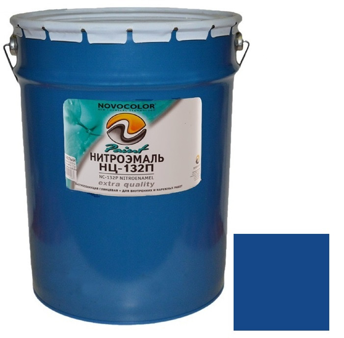 Купить Эмаль Novocolor НЦ-132 ГОСТ глянцевая синяя 25 кг по лучшей цене с доставкой - интернет магазин №1 в России