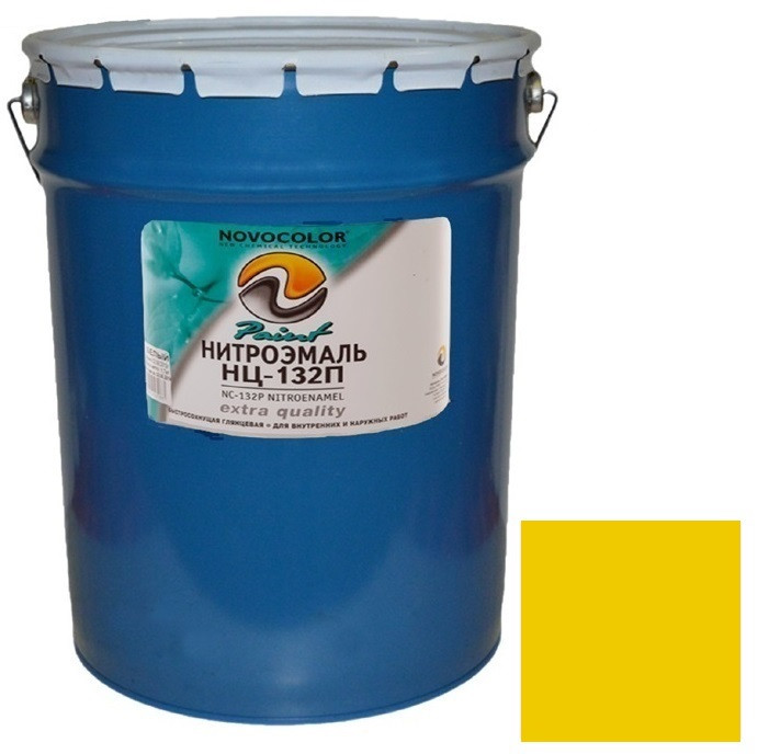 Купить Эмаль Novocolor НЦ-132 ГОСТ глянцевая жёлтая 25 кг по лучшей цене с доставкой - интернет магазин №1 в России