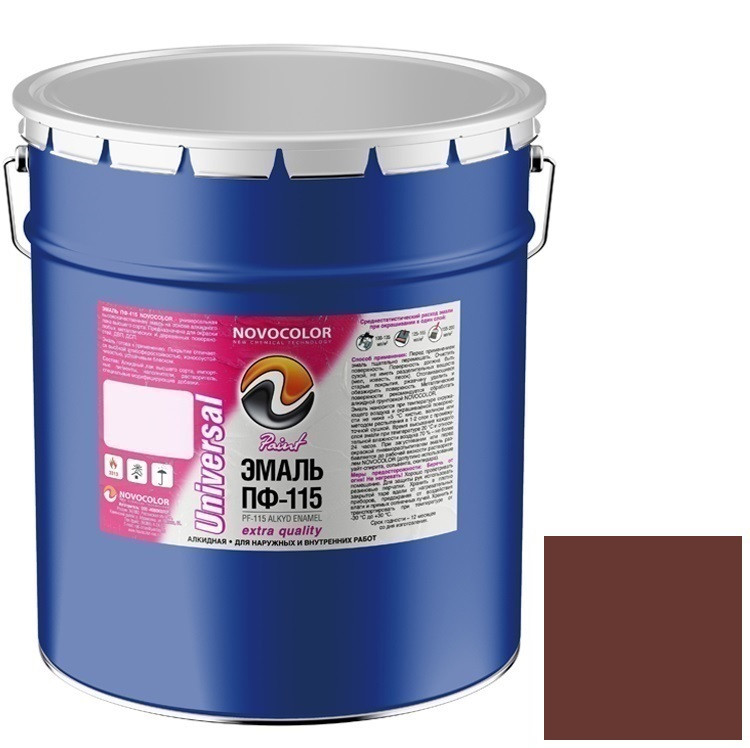Купить Эмаль Novocolor ПФ-115 красно-коричневая глянцевая 25 кг по лучшей цене с доставкой - интернет магазин №1 в России