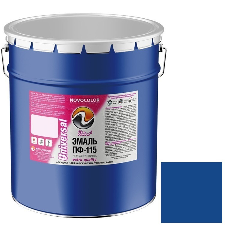 Купить Эмаль Novocolor ПФ-115 синяя глянцевая 25 кг по лучшей цене с доставкой - интернет магазин №1 в России