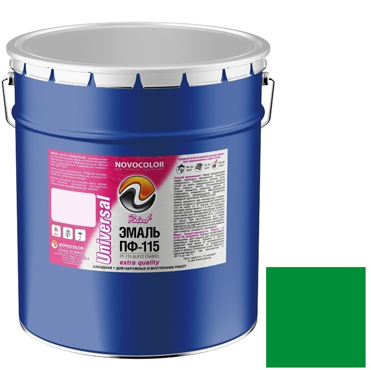 Купить Эмаль Novocolor ПФ-115 зеленая глянцевая 25 кг по лучшей цене с доставкой - интернет магазин №1 в России