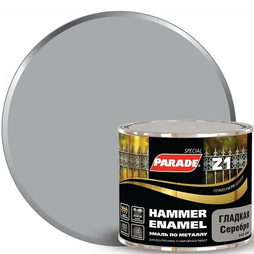 Купить Эмаль по металлу Parade Special Z1 гладкая RAL 9006 Л-С серебряная 0,45 л по лучшей цене с доставкой - интернет магазин №1 в России