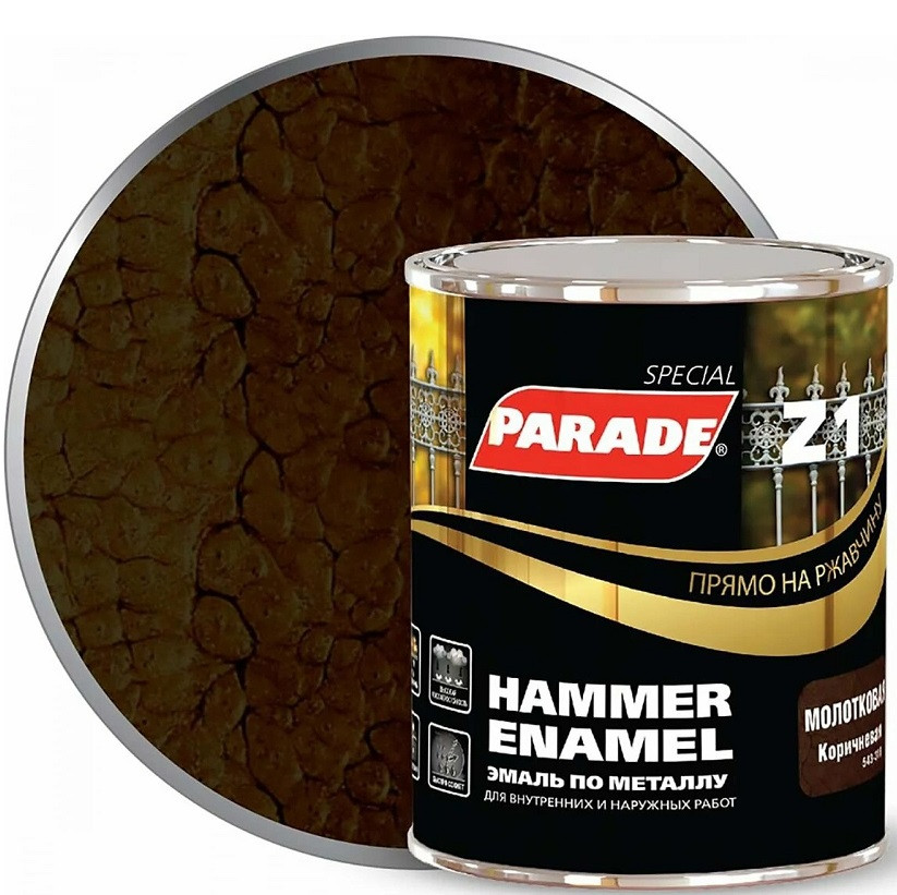 Купить Эмаль по металлу Parade Special Z1 молотковая 543-318 Л-С коричневая 0,75 л по лучшей цене с доставкой - интернет магазин №1 в России
