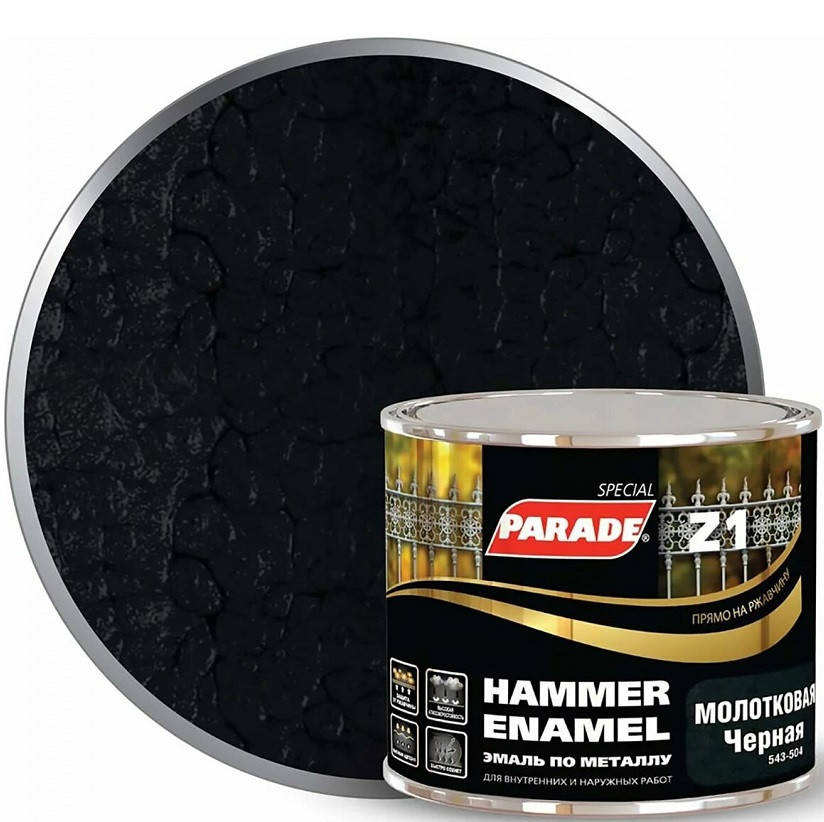 Купить Эмаль по металлу Parade Special Z1 молотковая 543-504 Л-С черная 0,45 л по лучшей цене с доставкой - интернет магазин №1 в России