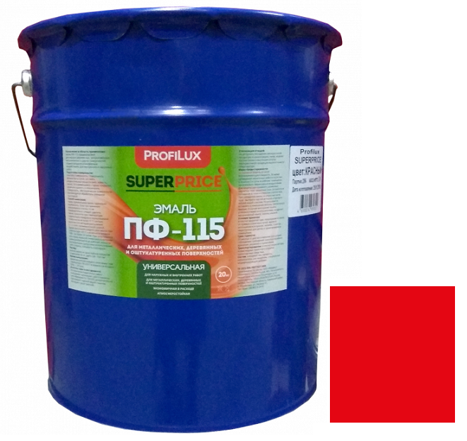 Купить Эмаль Profilux Superprice ПФ-115 красная полуматовая 20 кг по лучшей цене с доставкой - интернет магазин №1 в России