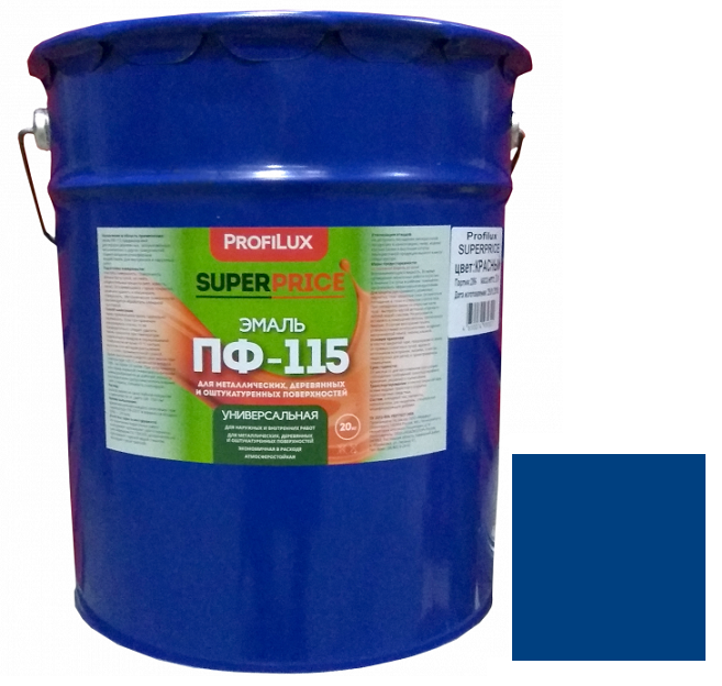 Купить Эмаль Profilux Superprice ПФ-115 синяя полуматовая 20 кг по лучшей цене с доставкой - интернет магазин №1 в России