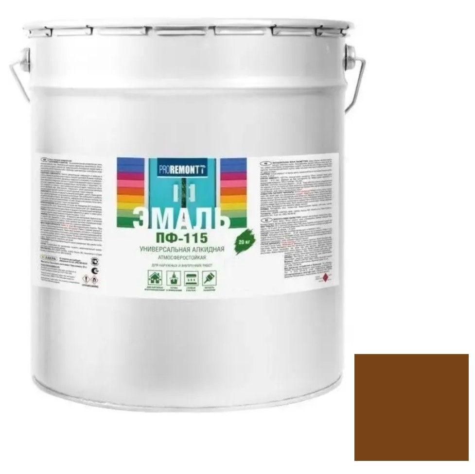 Купить Эмаль Proremontt ПФ-115 шоколадно-коричневая 20 кг по лучшей цене с доставкой - интернет магазин №1 в России