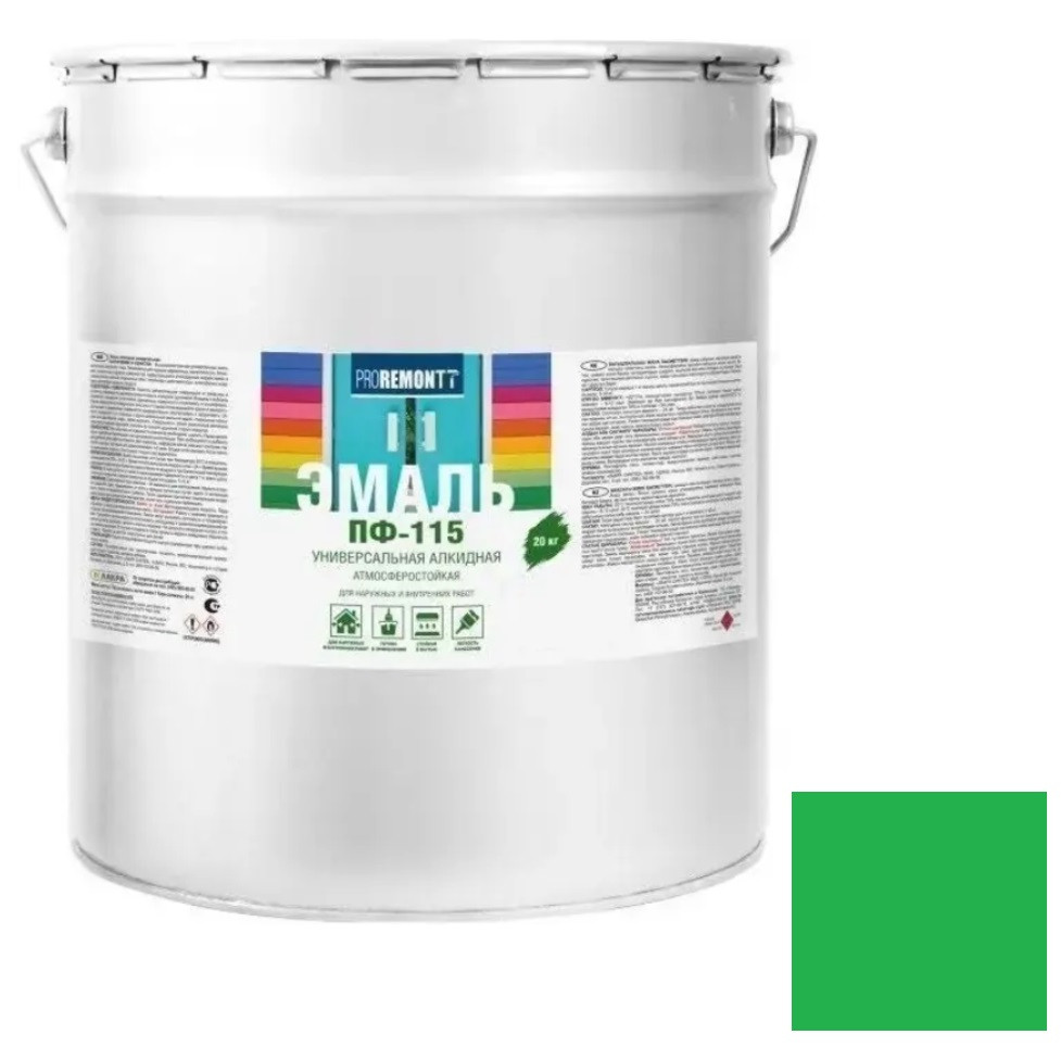 Купить Эмаль Proremontt ПФ-115 ярко-зеленая 20 кг по лучшей цене с доставкой - интернет магазин №1 в России