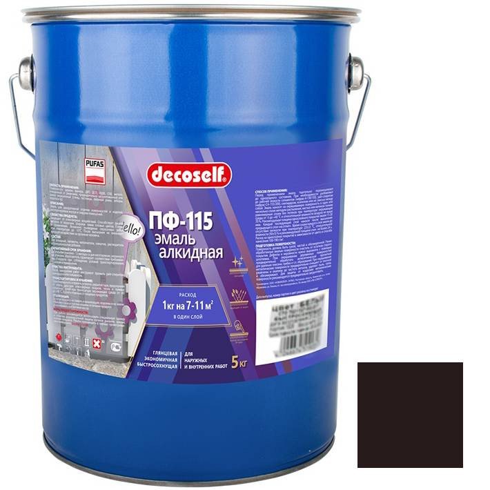 Купить Эмаль Pufas Decoself ПФ-115 коричневая 5 кг по лучшей цене с доставкой - интернет магазин №1 в России