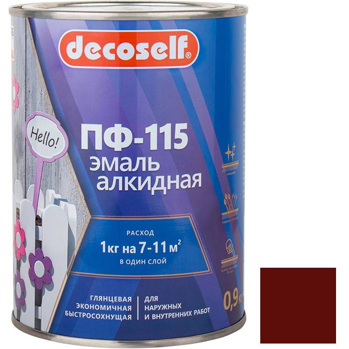 Купить Эмаль Pufas Decoself ПФ-115 красная 0,9 кг по лучшей цене с доставкой - интернет магазин №1 в России