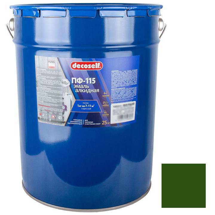 Купить Эмаль Pufas Decoself ПФ-115 салатная 25 кг по лучшей цене с доставкой - интернет магазин №1 в России