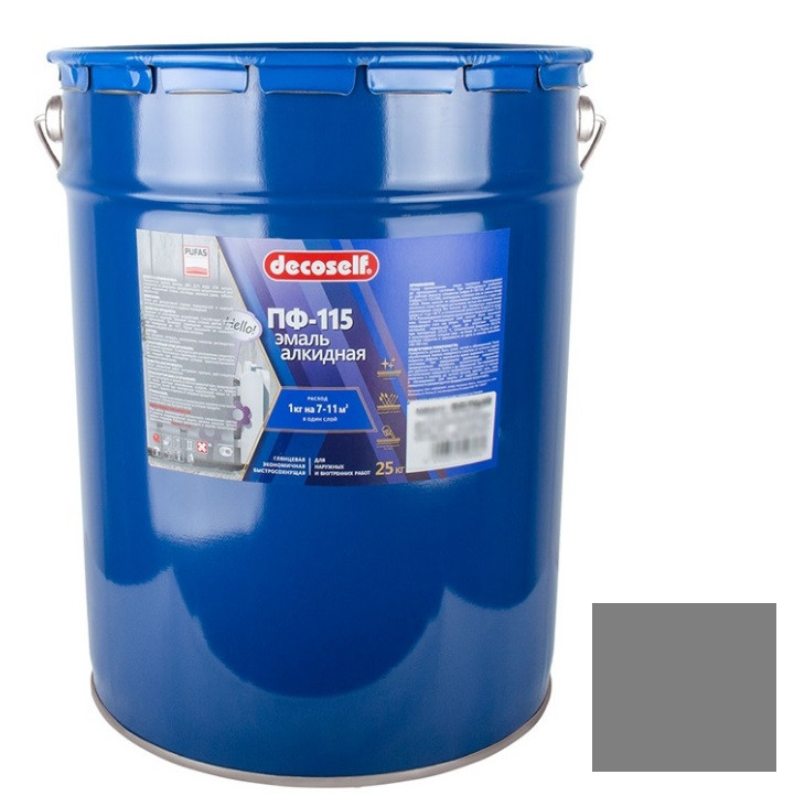 Купить Эмаль Pufas Decoself ПФ-115 серая 25 кг/18,7 л по лучшей цене с доставкой - интернет магазин №1 в России