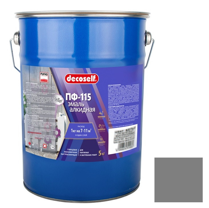 Купить Эмаль Pufas Decoself ПФ-115 серая 5 кг/3,7 л по лучшей цене с доставкой - интернет магазин №1 в России