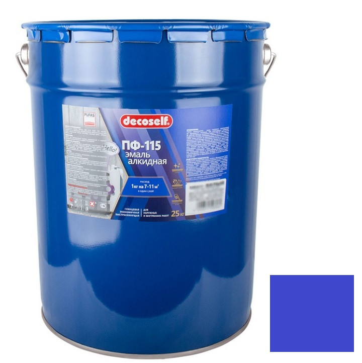 Купить Эмаль Pufas Decoself ПФ-115 синяя 25 кг/18,7 л по лучшей цене с доставкой - интернет магазин №1 в России