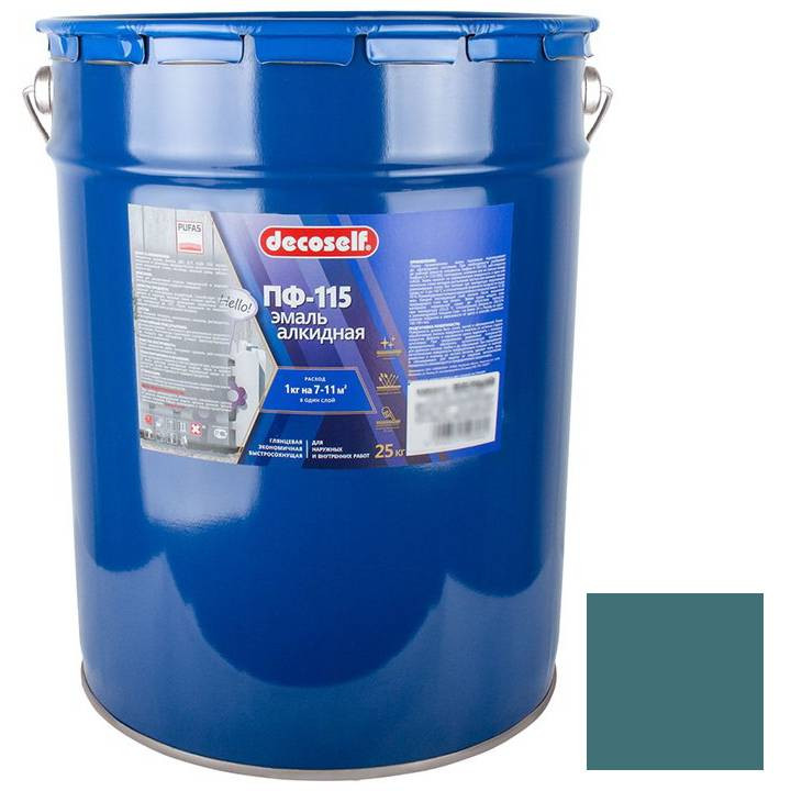 Купить Эмаль Pufas Decoself ПФ-115 светло-голубая 25 кг по лучшей цене с доставкой - интернет магазин №1 в России