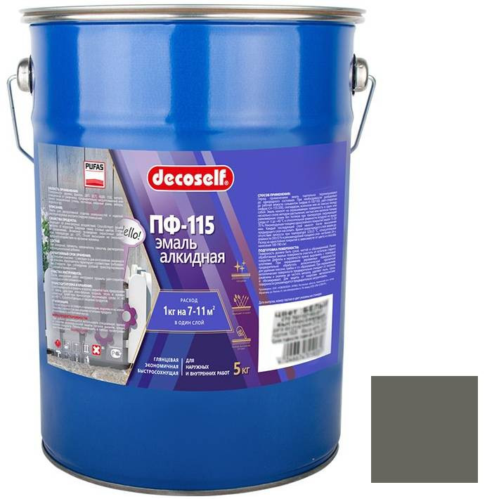Купить Эмаль Pufas Decoself ПФ-115 светло-серая 5 кг по лучшей цене с доставкой - интернет магазин №1 в России