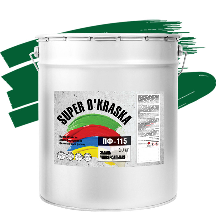 Купить Эмаль Super Okraska ПФ-115 зеленая глянцевая 20 кг по лучшей цене с доставкой - интернет магазин №1 в России