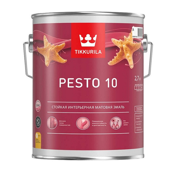 Купить Эмаль Tikkurila Pesto 10 матовая база А 2,7 л по лучшей цене с доставкой - интернет магазин №1 в России