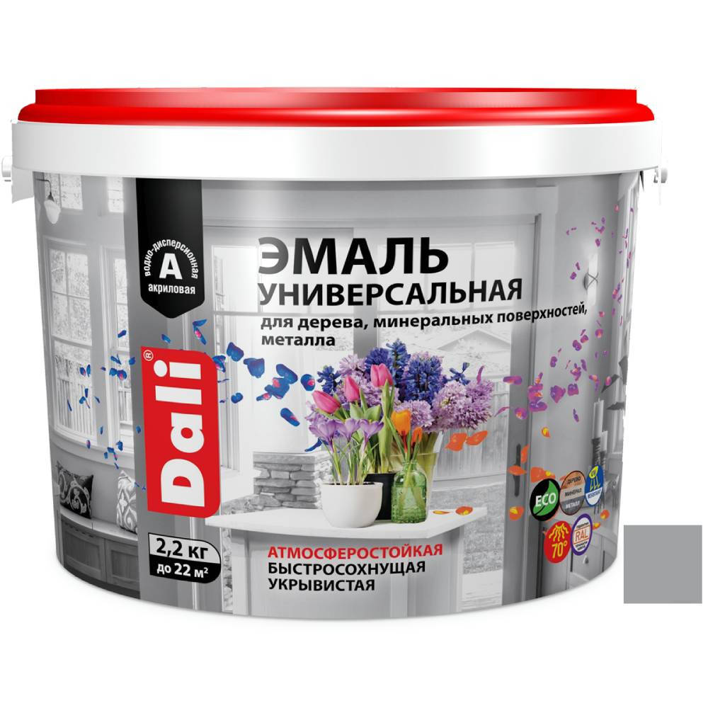Купить Эмаль универсальная акриловая Dali 80242 атмосферостойкая полуматовая база А серая RAL 7004 2,2 кг по лучшей цене с доставкой - интернет магазин №1 в России