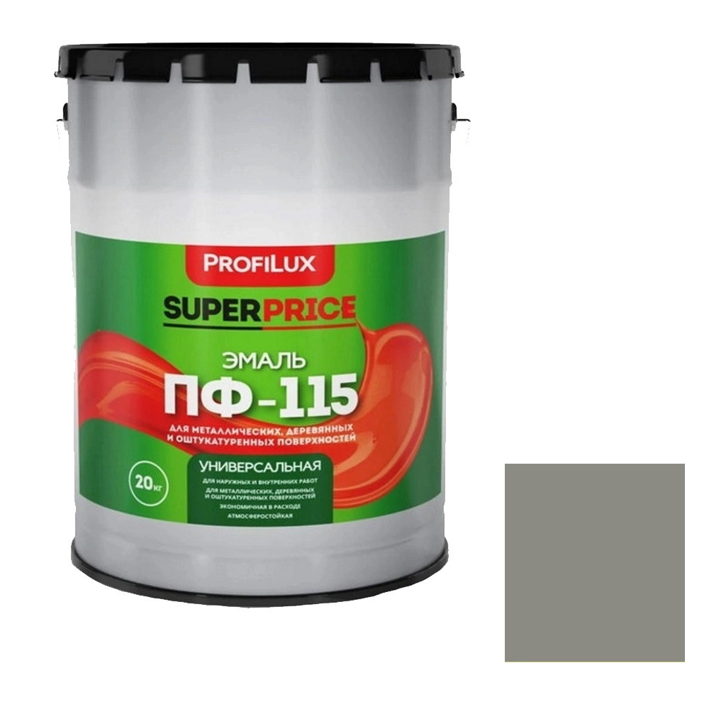 Купить Эмаль универсальная алкидная Profilux Superprice ПФ-115 полуматовая серая 20 кг по лучшей цене с доставкой - интернет магазин №1 в России