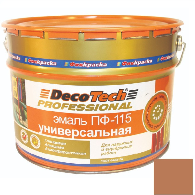 Купить Эмаль универсальная DecoTech Professional ПФ-115 шоколадно-коричневая под RAL8017 10 кг по лучшей цене с доставкой - интернет магазин №1 в России
